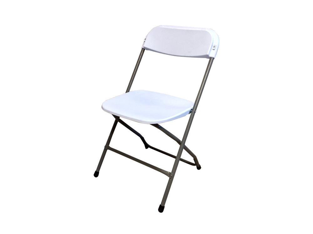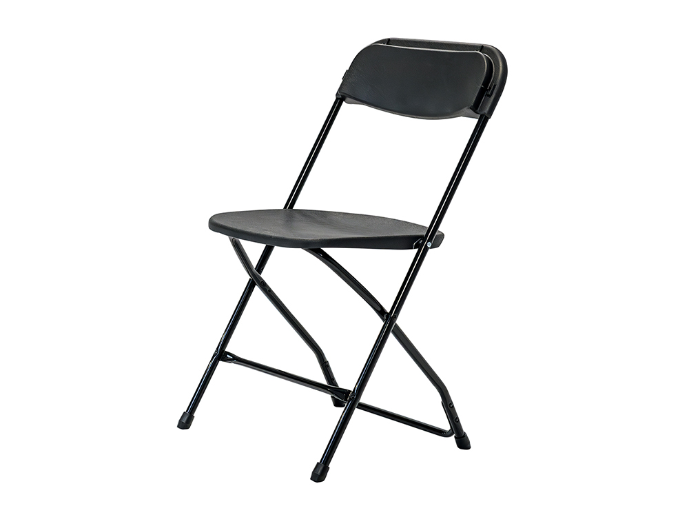 Deze stapelbare vouwstoelen zijn beschikbaar in zwart of wit met een grijs onderstel, of volledig in het zwart – zitvlak, rugleuning én onderstel in stijlvol zwart uitgevoerd.