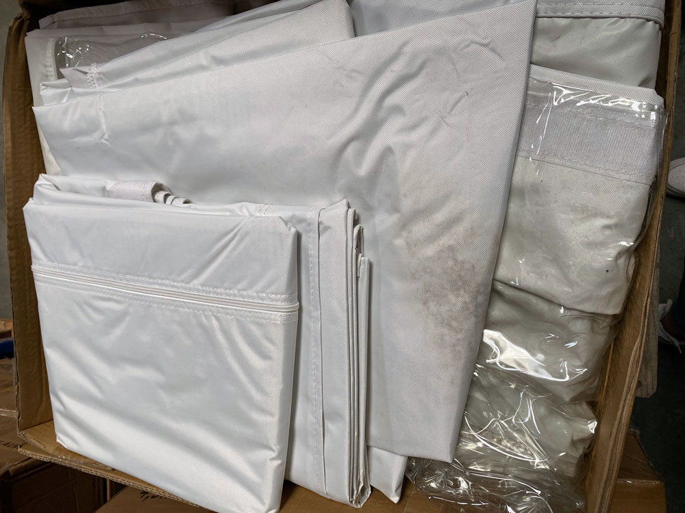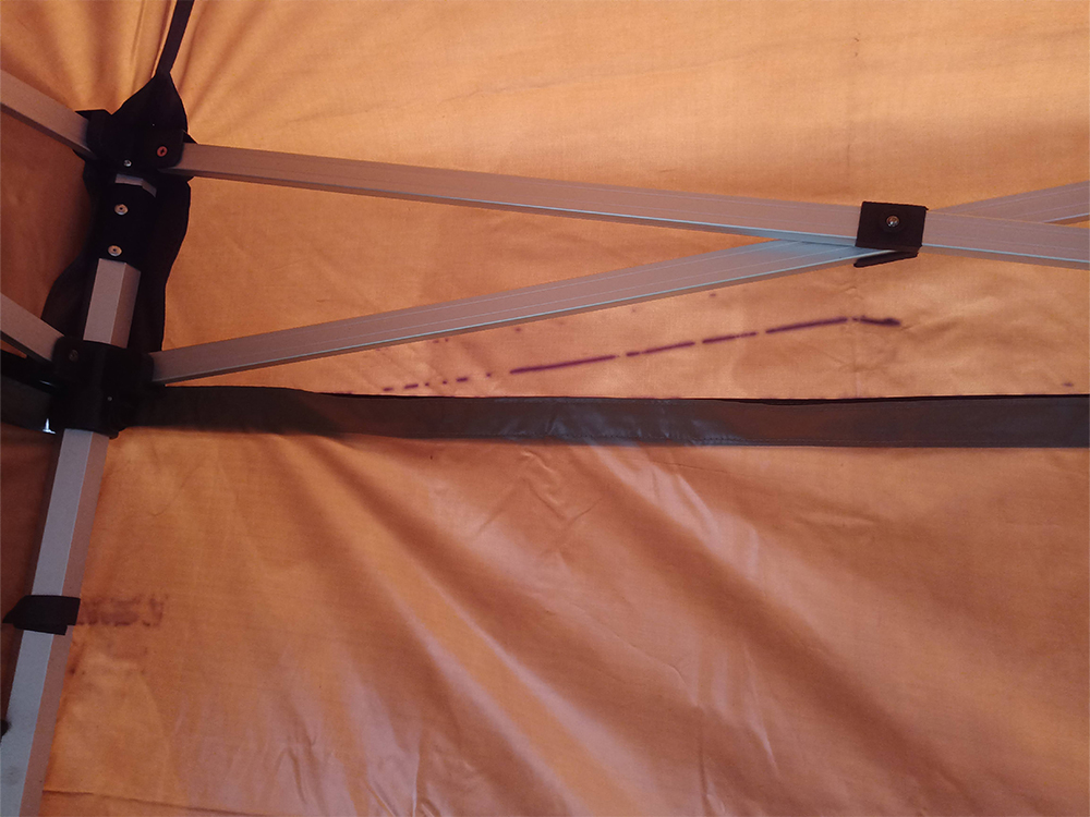 - De pootflappen zijn iets te kort (fabricagefout) waardoor ze niet vastgehaakt kunnen worden aan de staanders - kan wel vastgemaakt worden met elastieken aan het frame