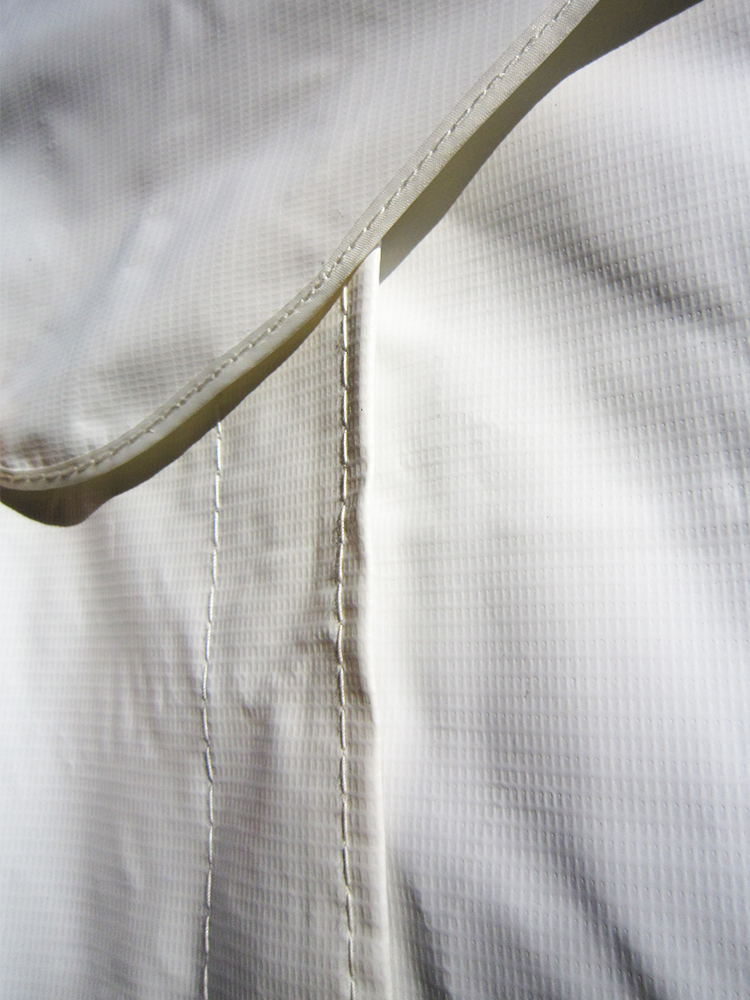Het zeil voor het dak bestaat uit zware PVC van 550 gr/m² (vergelijkbaar met vrachtwagen bache), de zijpanelen zijn 500 gr/m². Ze hebben een brandvertragende werking. Alle naden van de tent zijn gelast. Alle zeilen zijn uitgerust met degelijke ringen uit roestvrij koper.