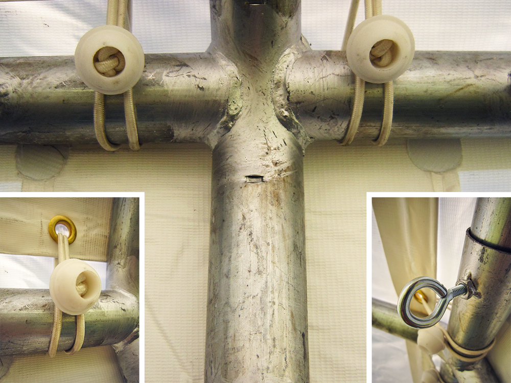 Met de lange rekkers bevestigt u het dakzeil en de zijwanden aan het frame van uw tent. Met de korte rekkers maakt u de kopse zijwanden aan het dakzeil vast. De korte rekkers heeft u echter niet bij alle modellen nodig. Alle elastieken zijn voorzien van een bol.