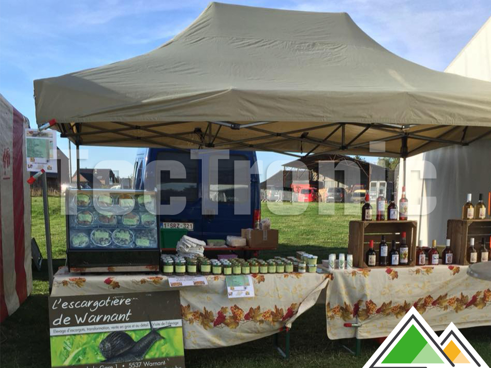 Let op: de bruine zeilen kunnen zwarte markeringen vertonen aan de binnenkant door het klittenband (zie foto's). Daarom bieden wij deze bruine vouwtent aan tegen een bijzonder lage prijs.