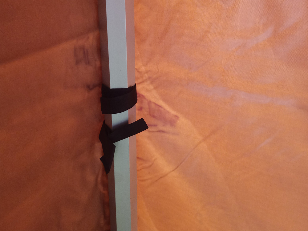 - Bruine zeilen met mogelijks zwarte aftekeningen op de binnenzijde door de zwarte velcro's
