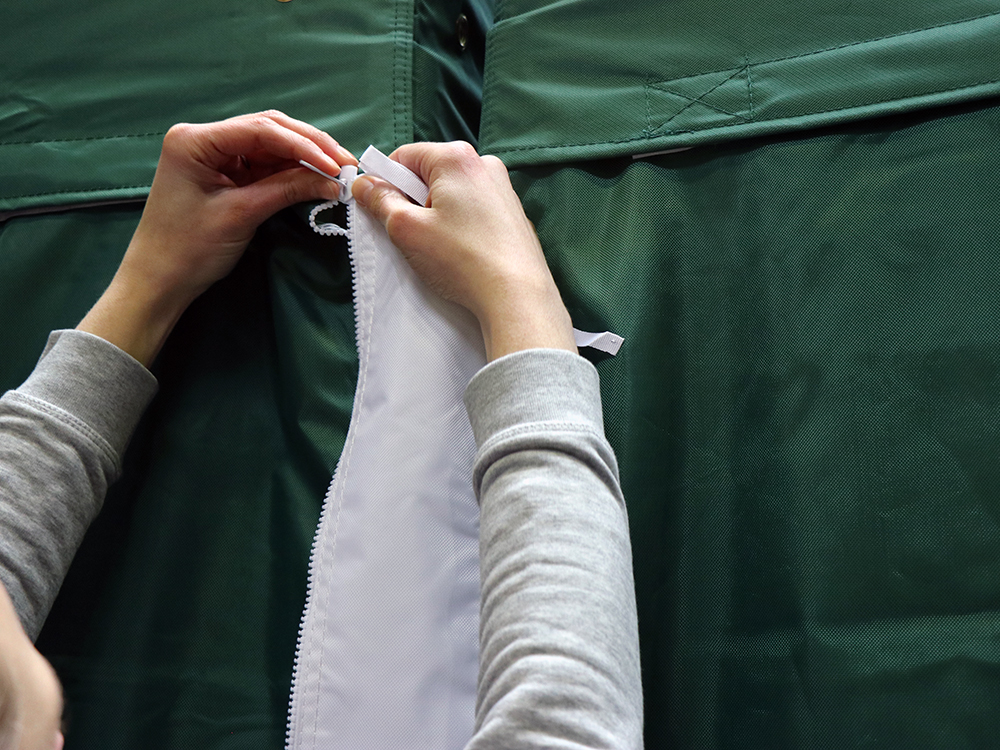 Wanneer u twee Solid 30 of Solid 40 vouwtenten met zijwanden aan elkaar koppelt, ontstaat er tussen de tentframes een verticale kier waar wind en regen vrij spel hebben. Met deze verbindingsstrook ritst u eenvoudig een extra tussenstuk tussen de zijwanden, waardoor de volledige opstelling opnieuw wind- en waterdicht wordt.